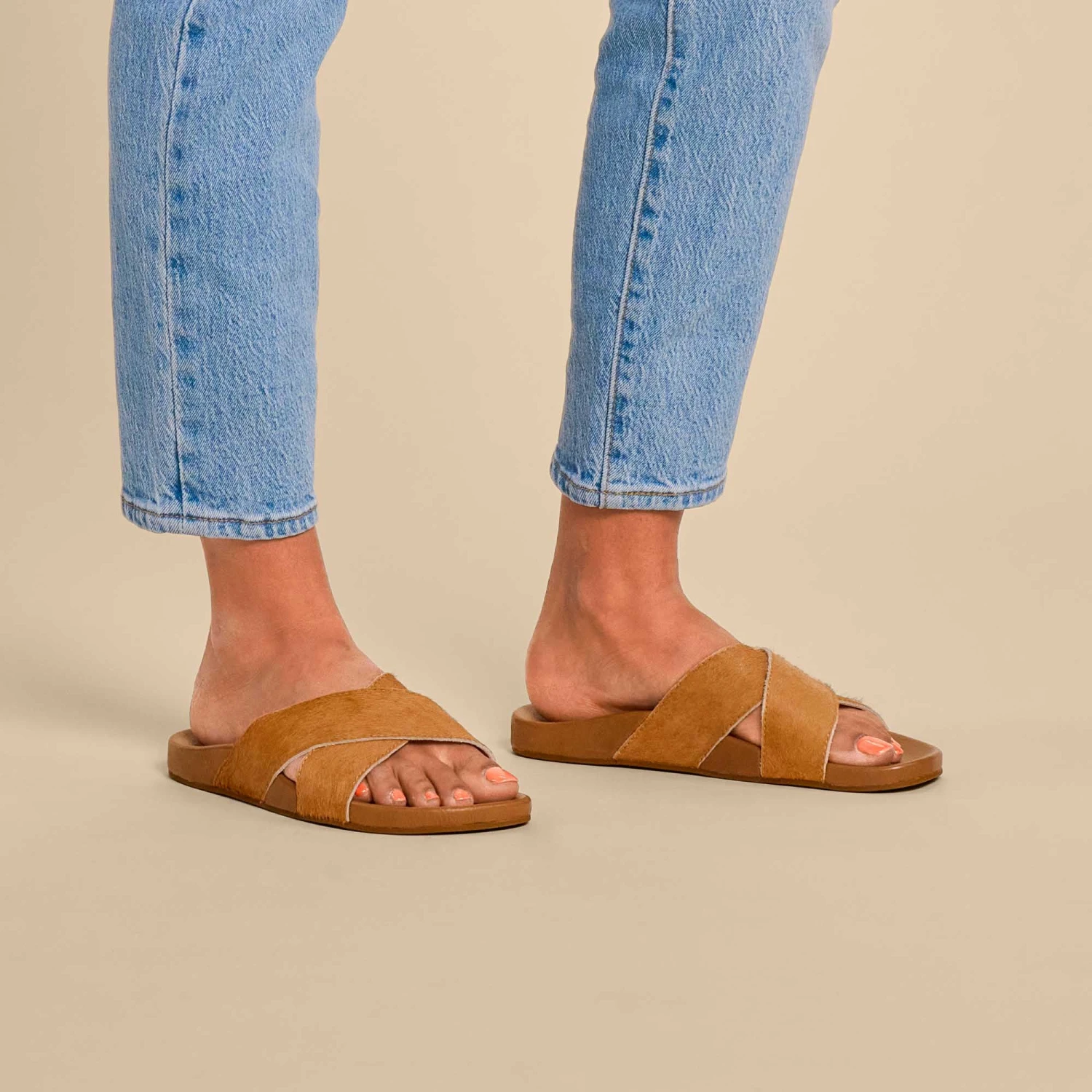 Meet the sophisticated Kīpe‘a ‘Oho, our limited-edition pony hair crossover sandals. Crafted with premium full-grain leather and soft pony hair for an elevated take on her classic summer sandals.