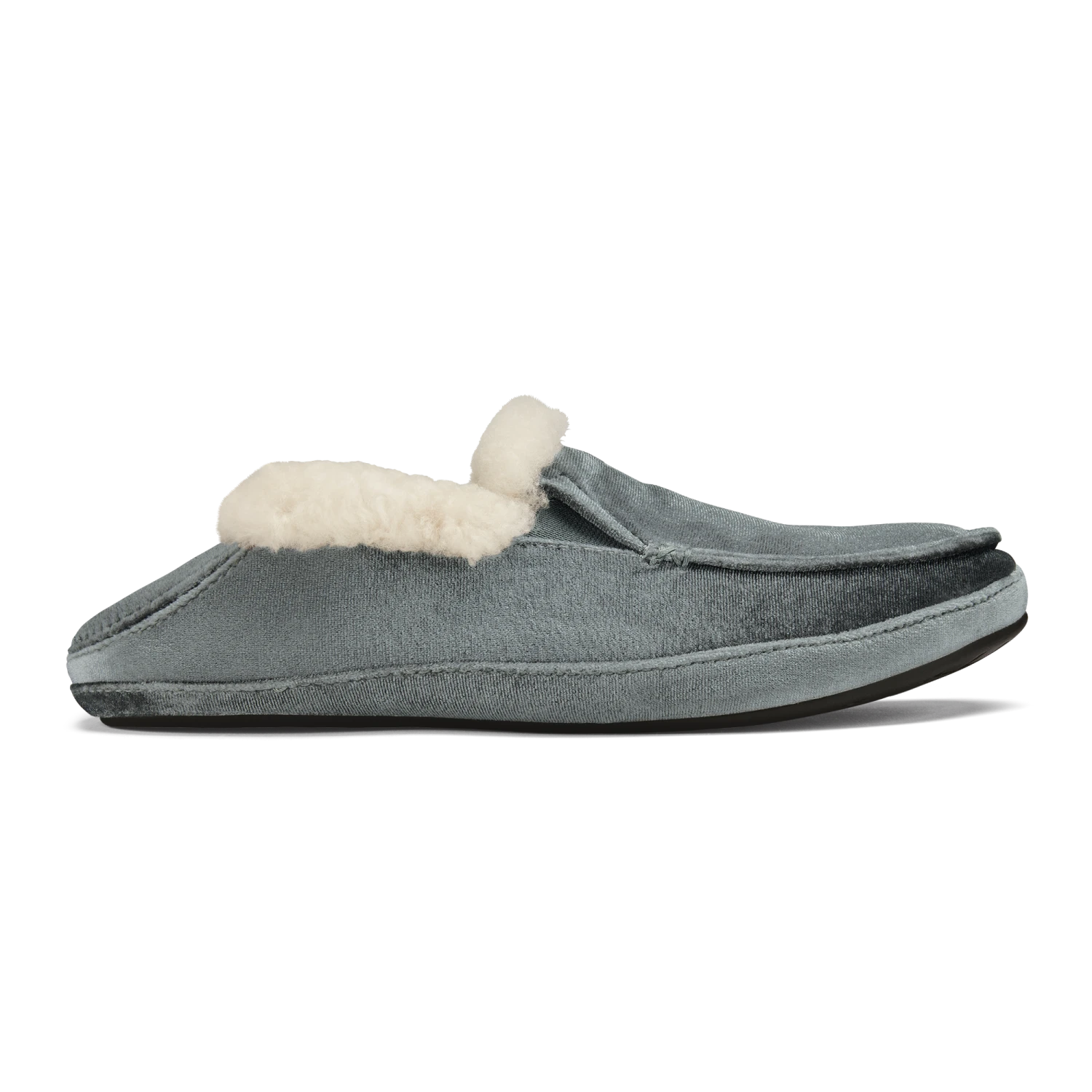 Velvet materials reminiscent of the shimmering ocean surface at sunrise—the Kuʻuna Lānui has a sophisticated style made for soaking it in. Lined with cozy shearling, these slippers are perfect for those quiet moments before hitting the streets or surf.
