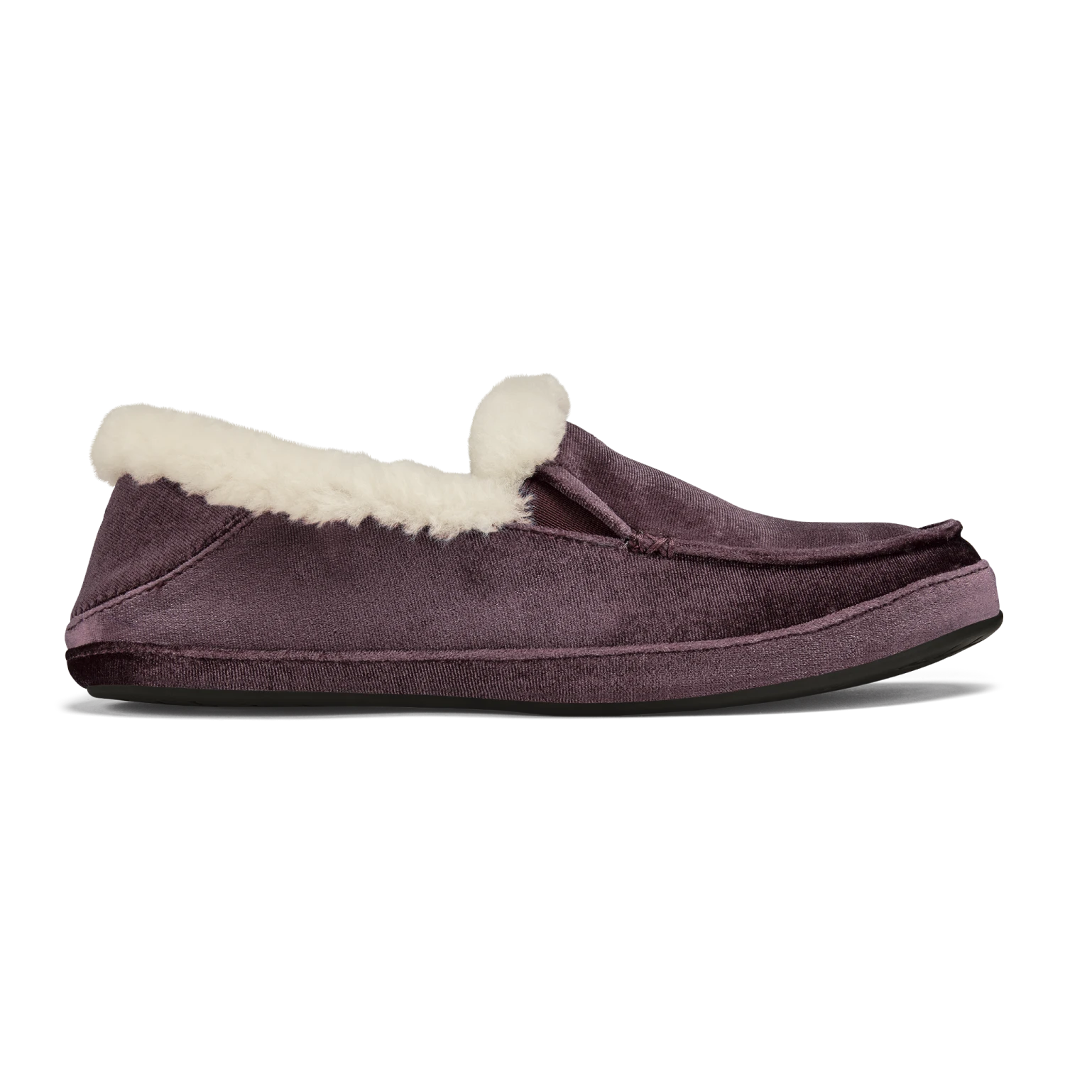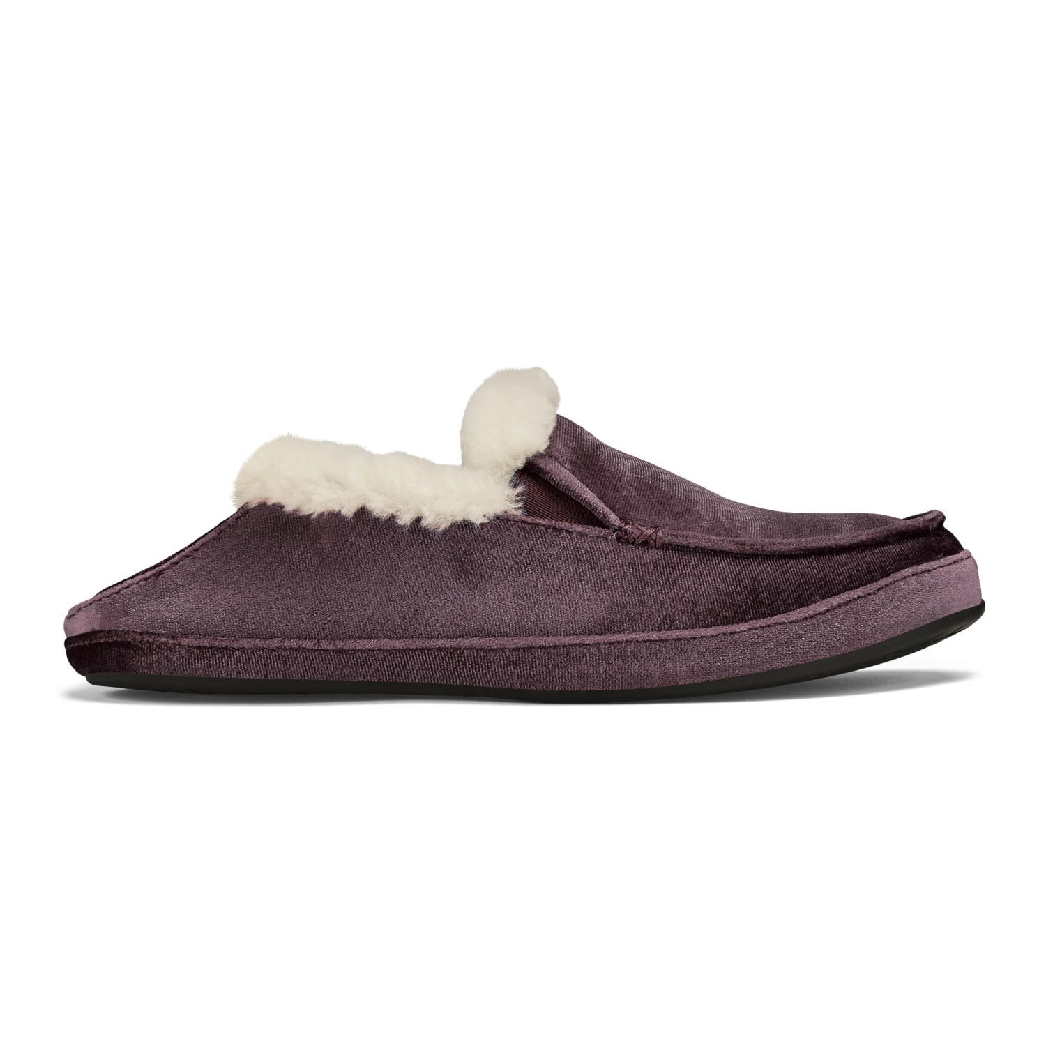 Velvet materials reminiscent of the shimmering ocean surface at sunrise—the Kuʻuna Lānui has a sophisticated style made for soaking it in. Lined with cozy shearling, these slippers are perfect for those quiet moments before hitting the streets or surf.